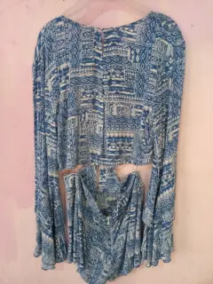 Blusa con short. Blusa con short y manga larga, amplia de LA parte de abajo, Color azul y blanco, Tallahassee chica, Nuevo, hermoso