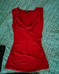 CONJUNTO INCLUYE: PANTALÓN PALAZZO NUEVO SIN ETIQUETA TALLA CHICA, MARCA CONTEMPO Y BLUSA ROJA SEMI NUEVA TALLA EXTRA CHICA/CHICA MARCA EXPRESS.