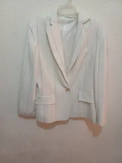 Bonito traje sastre. Traje dos piezas de pantalón, color beige con rayas color marrón muy tenues , comodo y casual talla 36 ,