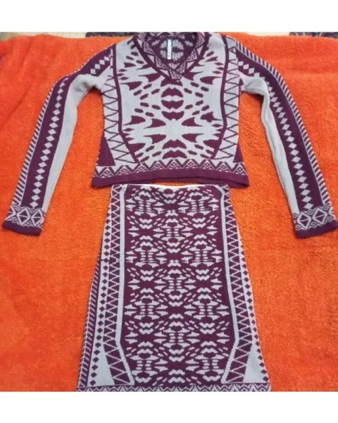 Conjunto. Conjunto de blusa y falda calientita color guinda En buen estado,solo se usó una vez