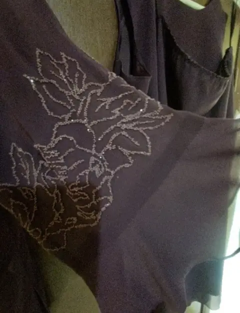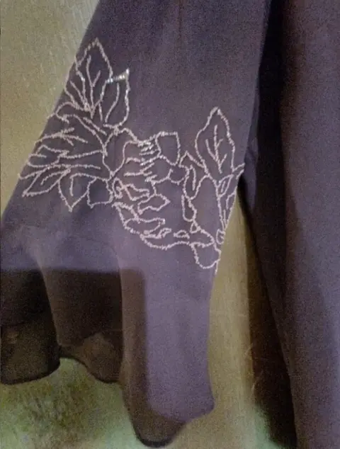 UsadoBuenas condicionesEsta guardado Necesita limpieza Falda larga,blusa, ensambleTransparencia en ensamble Detalles de bordado Color : guinda o morado