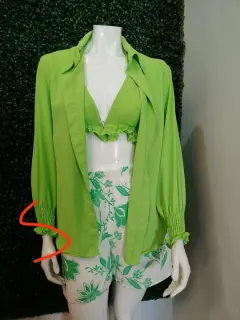 Conjunto tela sey es una tela ligera, incluye 3 piezas el top es solo para talla S y el blusón y shorh S y M es nuevo