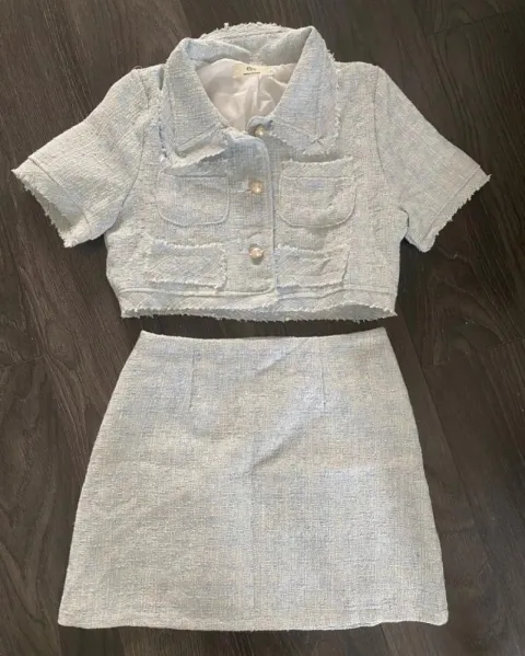 Conjunto estilo tweed 2 piezas con forro. Puede quedar a talla S y M Medidas busto 95 Cintura 74Cadera 94