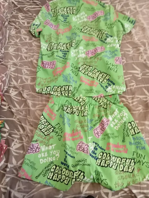 Conjunto. Bonito conjunto verde neón con estampados talla mediana da a una grande