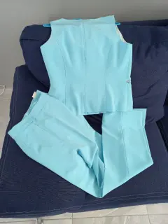 Conjunto de Pantalon y Chaleco color Azul cielo , talla 10 (M) , Marca Versai.100 % poliester