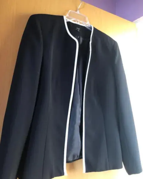 Conjunto blazer y vestido. En perfecto estado, me lo puse un par de veces, traje talla 32; esta todo forrado el vestido y el saco. Medidas saco: hombro a hombro 40 cm., axila a axila 50 cm., largo 58 cm., largo manga 60 cm., Medidas vestido: Axila a axila 48 cm., cintura 42 cm., cadera 50 cm., largo 104 cm.