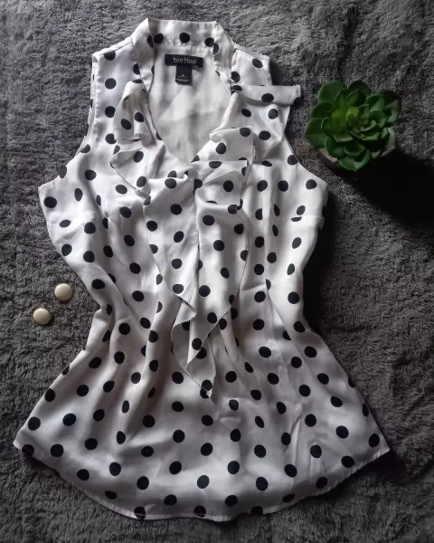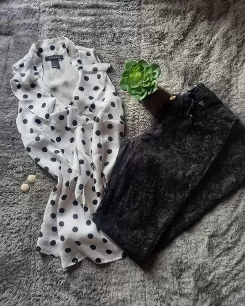 Conjunto pantalon y blusa, blanco y negro, excelente estado. Blusa marca white House/ Black Market talla S, tela tipo satinada, excelente estado, fresca, sin mangas, unico detalle no trae cinto, pero no afecta su uso. Pantalón marca H&M talla 5-7 (8), color negro con relieve, excelente estado, skinny.