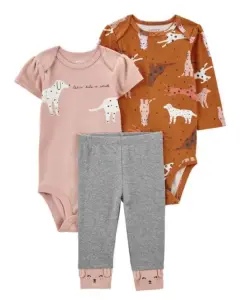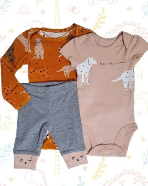 Conjunto carter's de 3 piezas original Incluye pañalero de manga larga, pañalero manga corta y pantalón.Nuevo y con etiqueta