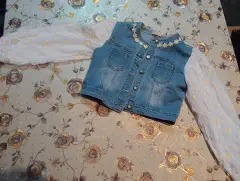 Hermoso conjunto de chamarra para niña con falda mezclilla y tela tipo encaje color blanco medidas:Chamarras manga 49 cm, largo 34.5 cm, de axila a axila 37 cmEnvío al siguiente día hábil