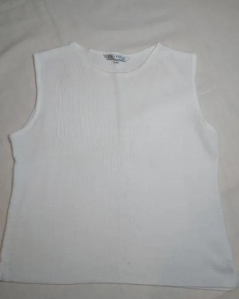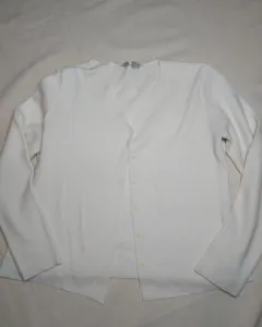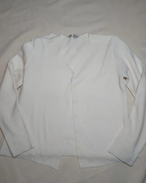 Sencillo conjunto color hueso, sin adornos, calientito, el suéter es de manga larga con botones y la blusaes de manga corta. No tiene ningun detalle. Dice talla ch pero queda a M.