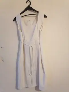 Conjunto dama. Vestido sin mangas y blazer color hueso, talla 7, . Excelente para evento formal.