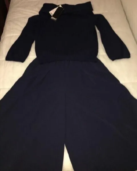 CONJUNTO SWEATER Y PANTALÓN CORTOL A estrenar con etiqueta Only LoveDescripción:Conjunto con sweater tela suave color azul marino con cuello amplio. (Tela de sweater) axila a axila 49 cm, cintura con resorte 42.5 cm, lago 71 y 46 de ancho de pierna .