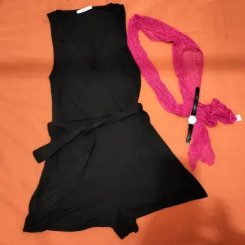 Coqueto conjunto de algodón y elastano sin mangas, el top cruza con abertura y tiene amarre en la cintura.Arme precioso De largo mide 83De axila a axila mide 41La tela estira