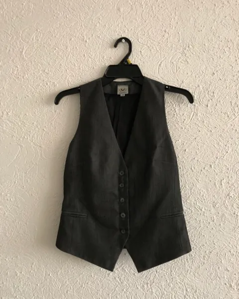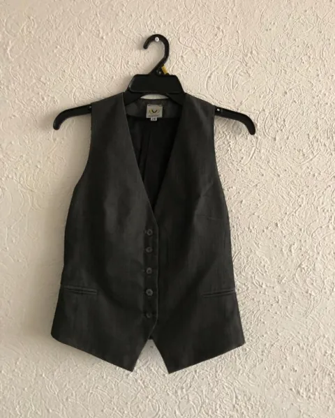 Conjunto ejecutivo pantalón y chaleco. Chaleco gris (obscuro) en excelente estado, pantalón de vestir de la misma tela, gris obscuro muy ejecutivo ambos talla S