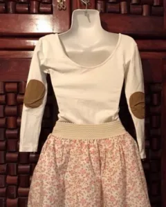 Conjunto de body color hueso y detalles en los codos en color cafe ,con falda tipo globo en color durazno es unitalla le queda perfecto de una talla S a una M!🌸😊