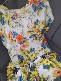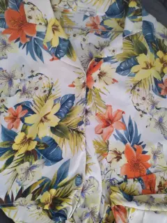 Conjunto floreado. Hermoso conjunto de shorts y blusa con botones al frente,tela fresca
