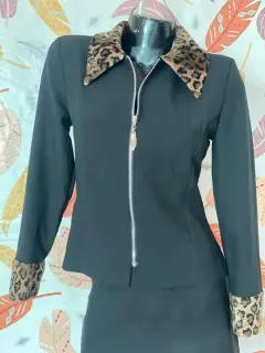 Conjunto Negro C/Anibal Print. Conjunto sacó y blusa con animal Print, excelente estado. ☑️ Acepto ofertas razonables en compras inmediatas.