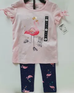 Conjunto de 2 pzas, playera con estampado de flamingo y jegging azul marino, marca OSHKOSH, NUEVO con etiqueta talla 2 y 5 .
