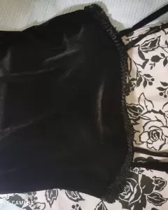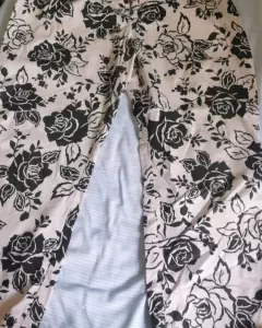 Pantalón corte recto , tiro alto de tela ligera y estampado de flores .Top talla L con sostén integrado .Tela muy suave de terciopelo.Queda a una talla 34o 36