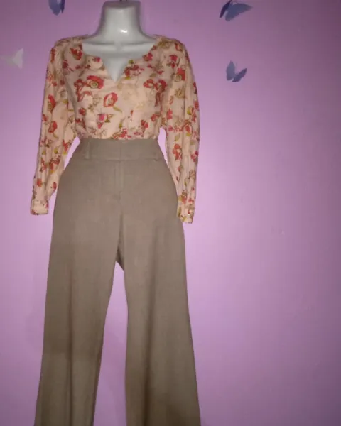 Conjunto ropa de vestir. Pantalon de vestir color BeigeMARCA LOFT NUEVO CON ETIQUETADICE TALLA 8PERO LE QUEDA A UNA TALLA 11MEDIDAS 44 CMCAMISA FLOREDA NUEVA SIN ETIQUETACOLOR MAMEYMARCA LANDS-ENDTALLA LMEDIDAS DE HOMBRO CON HOMBRO 42CMAXILA CON AXILA 61 CMVENTA POR LOS DOS