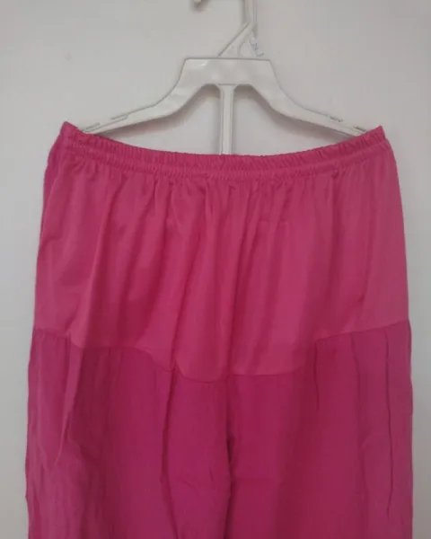 Conjunto rosado de maternidad. Lindo conjunto de maternidad a dos piezas el blusón está muy cómodo ya que viene amplio el pantalón es recto largo y en la parte de la pancita trae su bolsita para que esté cómoda el color es muy lindo execelente para está etapa te sentirás muy cómoda ya que la tela es muy ligera y fresca