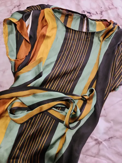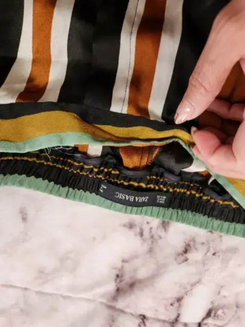 Conjunto satinado zara, el pantalón tiene elastico trasero y bolsas laterales, la blusa puede usarse fajada o desfajada con el cinturon de la misma tela. Talla s
