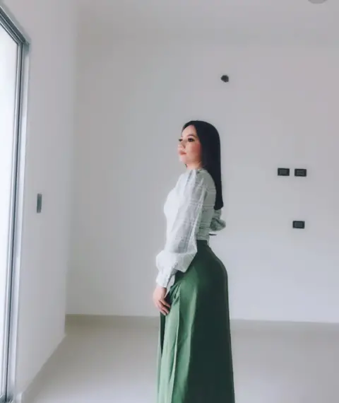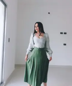 Conjunto verde sin detalles, incluye cinto, talla chica ambas prendas