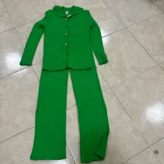 Contó en tejido de punto Unitalla. Hermoso cunjunto en tejido de punto en color verde, unitalla. En la parte lateral de abajo el pantalón viene abierto