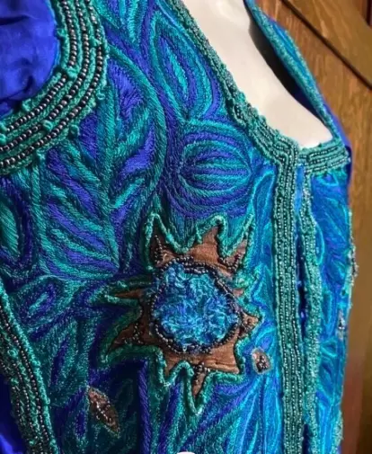 Precioso vestido largo de fiesta hindú de dos piezas, en excelentes condiciones, sin detalle bordado con pedrería color azul rey , talla S-M, precio negociable