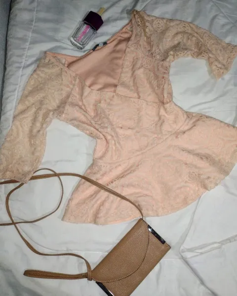 Hermoso conjunto,blusa pleplum de encaje muy coqueta y pantalon blanco marca cuidado con el perro talla #7 , este outfit es excelente para una tarde de fiesta.