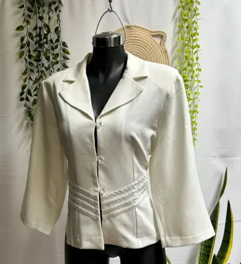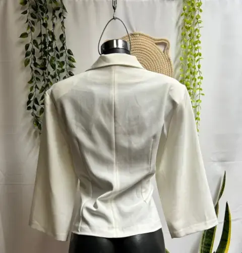 Lindo Traje blanco OPORTO☘️☘️🌸🌸. Hermoso traje de saco y pantalón, Imagen solo de referencia, es entre blanco y beige, marca Oporto, tiene hermosos detalles con listón, arma muy bonito, es un poco stretch, dice marca 13 adjunto medidas, ☘️pantalón, cintura 40, 52 caderas☘️, 🌸25 tiro, largo 99. 🌸🌈Saco, 42 hombros, axilas 48, 60 largo. 🌈👚B066.