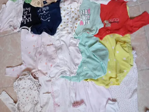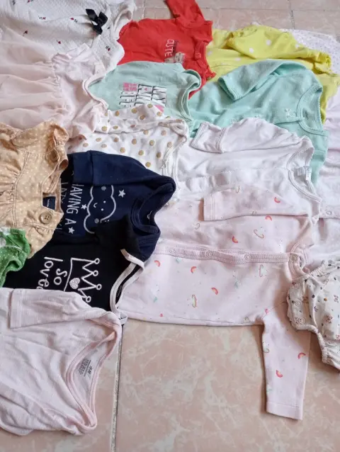 Hermoso pack de ropa para bebé talla 0-3 meses, contiene marcas como Gerber, Carter's, Little me, etc. Está en excelentes condiciones