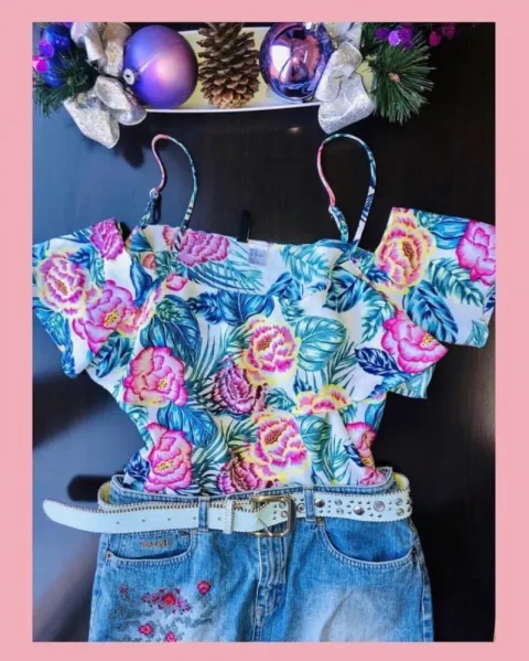 Outfit 3 PIEZAS DE DIFERNTES MARCAS. *Blusita Campesina Flores Marca H&M talla Mediana ? *Cinturon diamante color azul talla Chica/Mediana *Faldita Flores marca Ralph talla 5/7❤️ :) te dejo un cupon de descuento en tu primer compra: guadalupe-ledesma-valadezsySlv