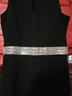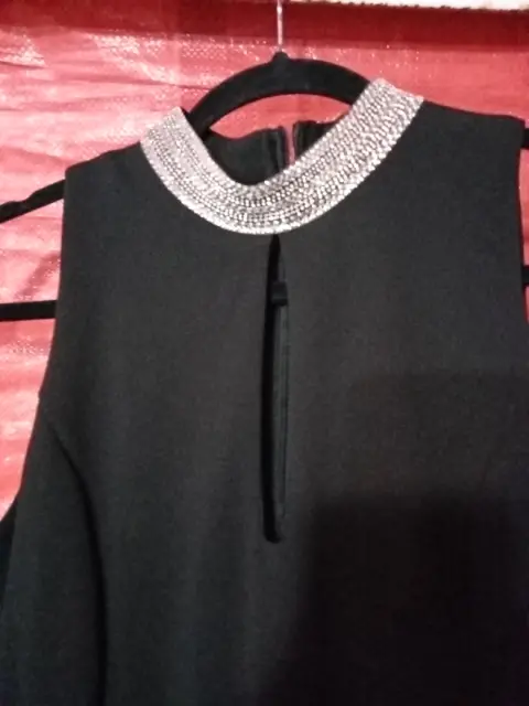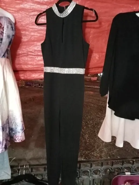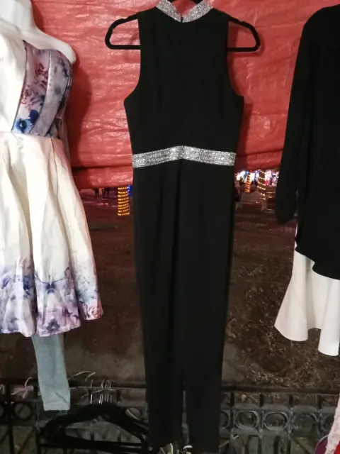 Palazo de pantalón tubo, color negro, detalle en ka cintura y cuello de pedrería. Talla m, nuevo.
