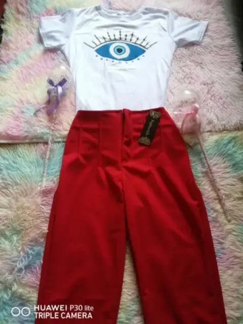 Pantalón y playera super de moda. Lindo pantalón corte recto, es talla unitalla abarca desde la 28 hasta la 36. La tela estira.La playera es unitalla abarca desde la 28 hasta la 36, es tela brush. Es completamente nuevo.