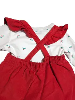 🌻 Conjunto de vestido falda de Pana para niñas Cat & Jack 🥰🌻 Talla 0-3 meses ❤️🌻 Color rojo navidad ❤️🌻 Muy bonita, ideal para estás fechas😊🎄