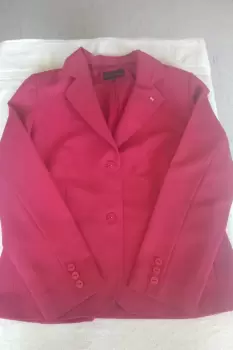Saco tipo blazer, de la Marca Novo Stilo, en color coral, talla 9, con forro, botones al enfrente, bolsas al frente, largo debajo de la cadera, 100% microfibra de poliéster, forro 55% poliéster, 45% lana, lavado y planchado en casa, excelentes condiciones, sin detalles. Se entrega con repuesto de botones. Se entrega tal y como se ve en las fotos. El costo en tienda es de $ 750.00, lo vendo en $ 350.00 y Pantalón formal Novo Stilo, color negro, talla 7, entubado, 55% polyester, 45% lana, poco uso, buenas condiciones, sin detalles, se entrega tal y como se ve en las fotos, el precio en tienda es de $ 550.00 lo vendo en $ 300.00 El conjunto queda en $ 650.00 Tambien se vende por separado. Te invito a que visites mi closet y armes tus propios conjuntos.