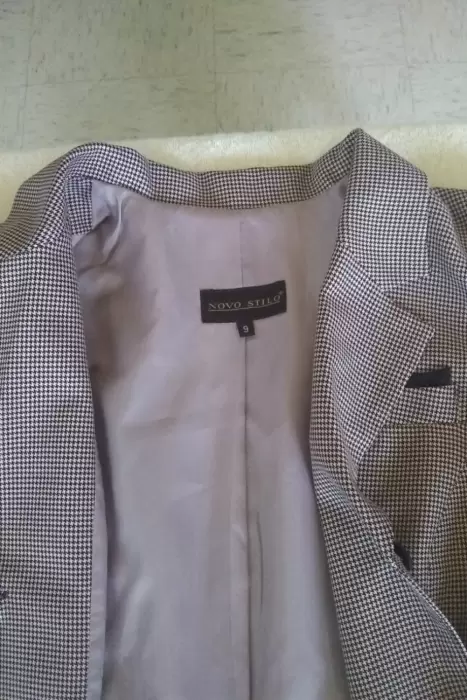 Saco formal tipo blazer, de la Marca Novo Stilo, a cuadros palo de rosa y negro, talla 9,con forro, botones al enfrente, bolsas al frente, largo debajo de la cadera, 55% poliéster, 45% lana, lavado y planchado en casa, poco uso, excelentes condiciones, sin detalles. Se entrega con repuesto de botones. Se entrega tal y como se ve en las fotos. El costo en tienda es de $ 750.00, lo vendo en $ 400.00 y Pantalón formal Novo Stilo, color negro, talla 7, entubado, 55% polyester, 45% lana, poco uso, buenas condiciones, sin detalles, se entrega tal y como se ve en las fotos, el precio en tienda es de $ 550.00 lo vendo en $ 300.00 El conjunto queda en $ 700.00 Tambien se vende por separado. Te invito a que visites mi closet y armes tus propios conjuntos.