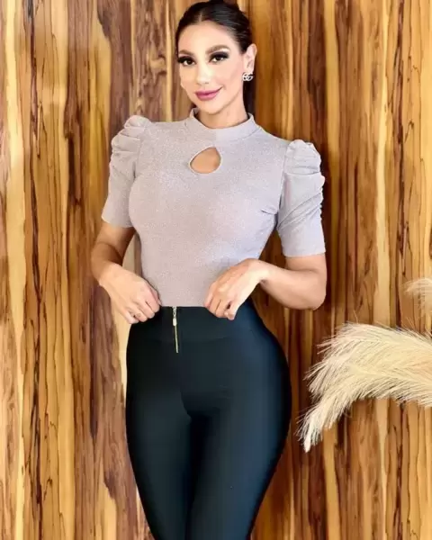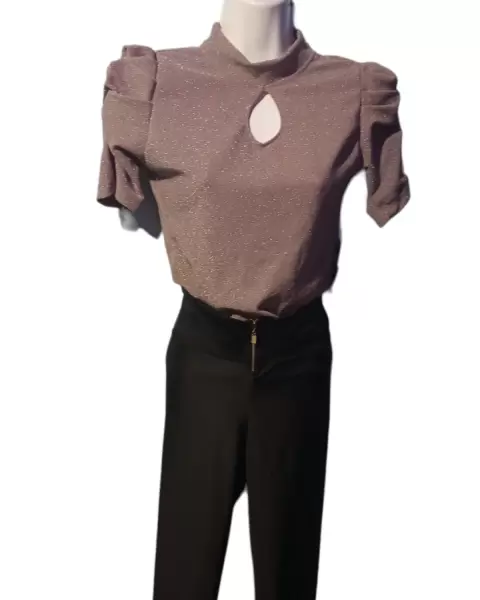 Set con Malla colombiana y cierre reforzado Blusa manga princesa con gota en escote tela Lurex brillo. Unitalla Abarca: 5,7,9 y 11