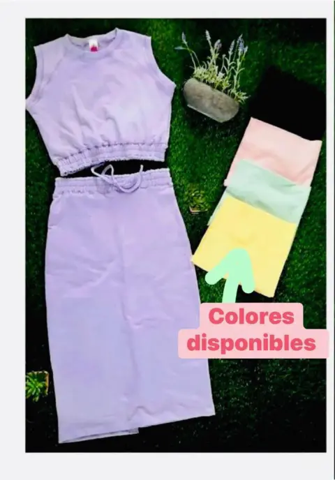 Sets sport falda lápiz con abertura parte de atrás, blusa corta con elástico. Tela tipo pants semi-stretch talla S/MColores rosa pastel y amarillo 💛💕