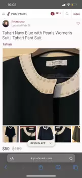 Traje sastre marca TAHARI azul marino saco con perlas en el cuello manga 3/4 pantalón recto a la cintura una prenda muy elegante para cualquier ocasión