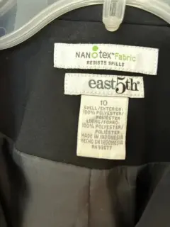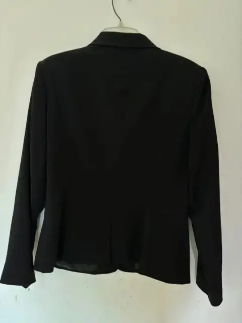 Traje sastre negro con falda. Corte elegante en talla 10. Medidas de axila a axila 49.5 cm largo saco 64.5 cintura saco 45 cm cintura falda 39.5 cm cadera falda 53.5 cm largo falda 61.5 cm