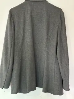 Traje sastre gris Oxford con textura marca Ivonne. Saco talla 12 medidas de axila a axila 49.5 cm largo 70 cm Pantalón talla 8 medida de frente cintura 39 cm cadera 47 cm Largo 90 cm