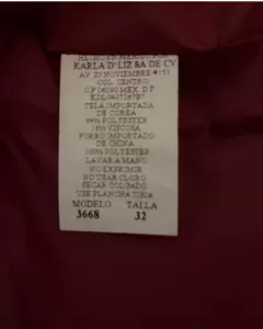 Talla 9/32Rojo vinoCon forro.Marca: Karla D' LizMexicano. 3 piezas Saco, Chaleco y Pantalón. Medidas:Saco H a H 41 cm. A a A 53 cm. Largo 60.5 cm.Chaleco: A a A 51.5 cm. Largo 56 cm.Pantalón:Cintura 40.2 cm. Cadera 50.5 cm. Largo 1.04 cm.Por favor, resuelva sus dudas antes de ofertar por la prenda. Estoy para servirle, gracias.