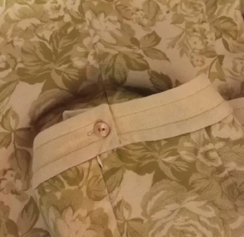 Traje de blazer y falda hecho en España, en tonos verdes, juvenil, elegante, falda con abertura discreta en ambos laterales y cierre oculto lateral, blazer un botón al frente y bolsas simuladas