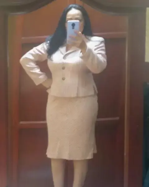 Bonito traje de saco corto y falda midi de corte tipo trompeta, es tela tweed con forro interior, super bonito y elegante*El saco es talla 6. Hombros 38cm. Axilas 48cm*Falda talla 8 Cintura 38cm Cadera 47cm*GRACIAS POR TU PREFERENCIA*