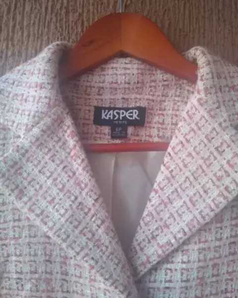 Traje sastre tweed Kasper. Bonito traje de saco corto y falda midi de corte tipo trompeta, es tela tweed con forro interior, super bonito y elegante*El saco es talla 6. Hombros 38cm. Axilas 48cm*Falda talla 8 Cintura 38cm Cadera 47cm*GRACIAS POR TU PREFERENCIA*