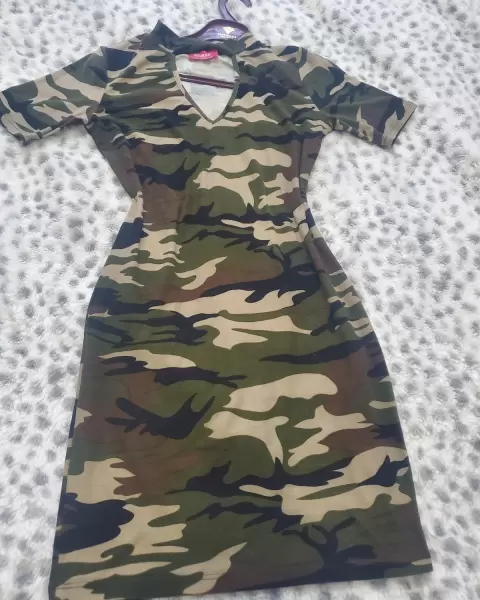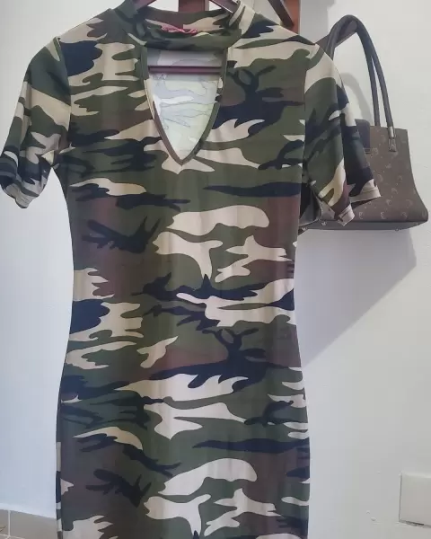Vestido camuflaje. Vestido sexy militar manga corta de cuello gargantilla .talla s le podría quedar a una M ya q estira bien.Ideal para usar con tenis , sandalias, chamarra mezclilla o saco.dejo ejemplo en la última foto