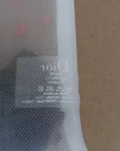 Cosmetiquera de tela tipo red en color blanco, marca Dior, con cierre, 23 cm de largo por 14 cm de alto