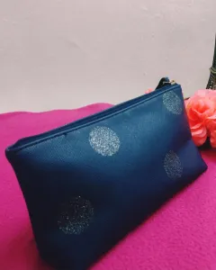 Preciosa cosmetiquera con glitters color azul marino original. Está preciosa y aún cuenta con plástico de etiqueta, sin embargo; tiene detallitos pequeños como muestro en última foto, poco perceptible pero es necesario mencionarlos. Te regalo $100 en tu primer compra en shoppiland.com con el siguiente código: Lafemmelegant2BlwE9